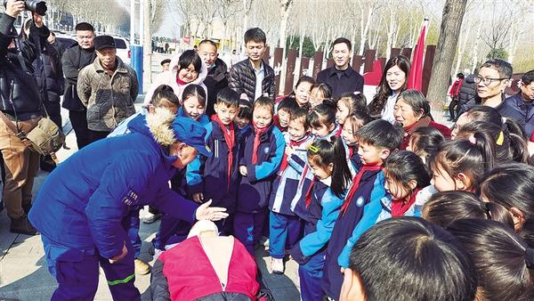 3月6日上午,志愿者在“雷锋集市”上为小学生讲解心肺复苏的操作流程。据了解,项城市通过“雷锋集市”活动,将学雷锋活动融入日常、化作经常,不断增强群众的幸福感和获得感。近年来,项城市累计开展各类文明实践活动2.17万场次,惠及群众120万余人次。