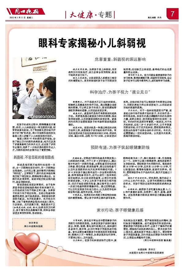 在孩子的成长过程中,眼睛健康至关重要。然而,小儿斜弱视这一常见眼部问题,却常常被家长忽视。为了帮助家长更好地守护孩子的“睛”彩未来,周口中视眼科医院院长崔国义深入讲解了小儿斜弱视相关知识。