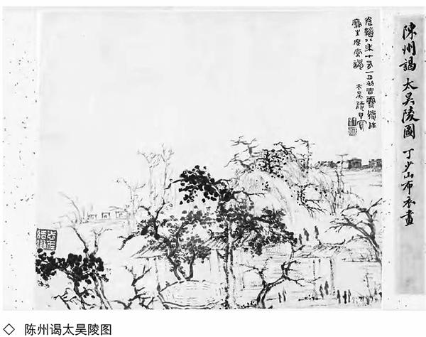 光绪八年(1882年)三月,甲骨文的发现者王懿荣由成都入京参加馆试,特意绕道来到淮阳,将次女王崇煐嫁给了吴重熹次子吴崶为妻,在淮阳盘桓半年之久,至十一月才北上。嫁女礼成,王懿荣在陈州期间特意拜谒了太昊陵,并请丁少山绘制成《陈州谒太昊陵图》,以为纪念。丁少山篆书题云:“光绪八年十有一月初,吉雪复路,廉生庶常谒太昊陵,艮写。”此当是周口金石篆刻史上一件很有意义的事情。