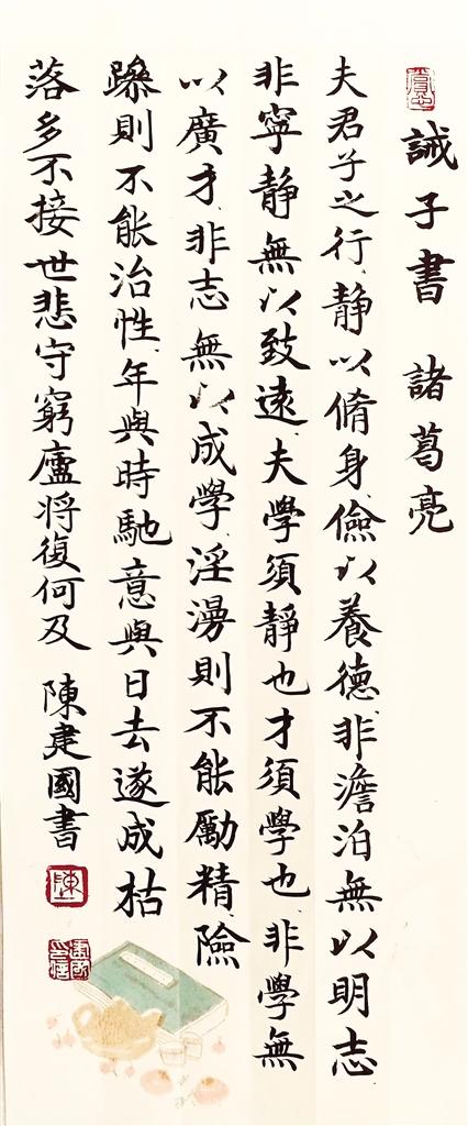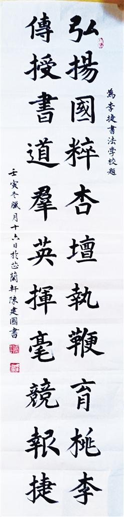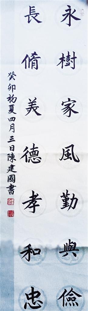 陈建国,男,1954年生,河南扶沟人,系河南省书法家协会会员、中国老年书画研究会会员、周口市书法家协会理事、周口市老年书画诗词研究会副会长。