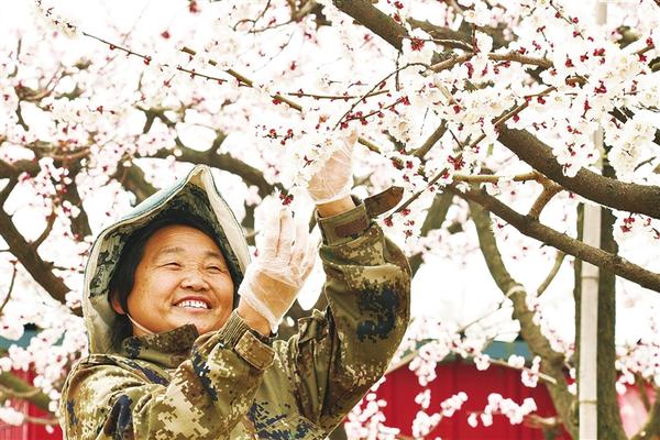 3月17日,果农正管理杏树。眼下,川汇区园艺中心200亩果园内杏花盛开,花香袭人,甚是壮观,引得市民纷纷驻足,拍照留念。记者 梁照曾 摄