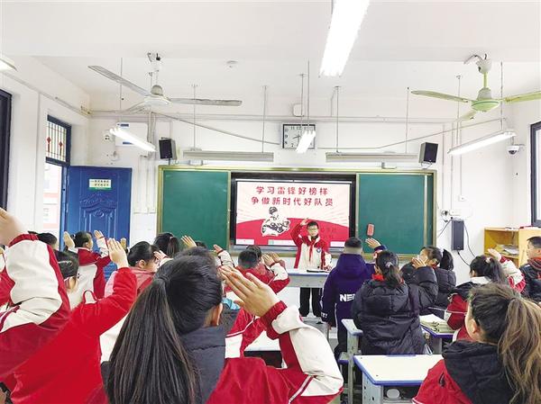 “雷锋故事”朗诵会结束后,全体学生起立致敬雷锋叔叔。为传承雷锋精神、弘扬时代新风,近日,周口市建设路实验学校开展了丰富多彩的“学雷锋”主题活动,让雷锋精神在校园中绽放出更加耀眼的光芒。