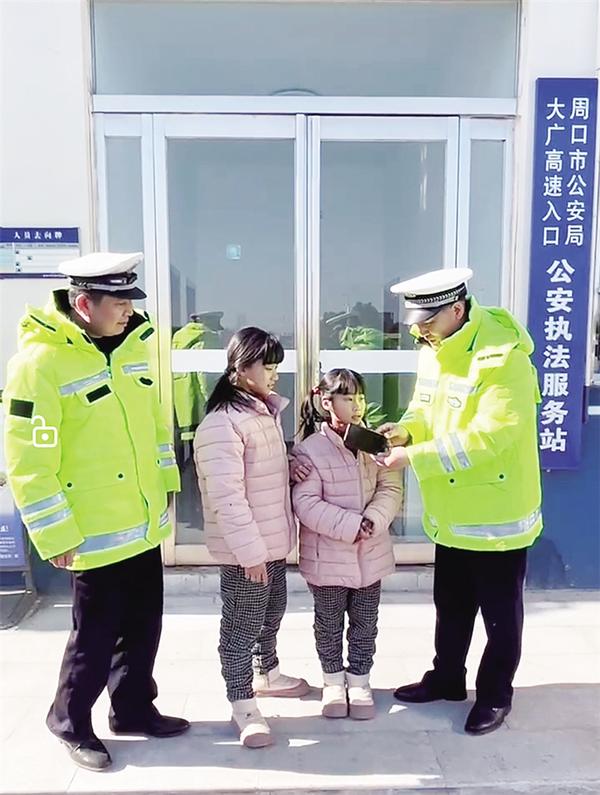 朱琳熙和朱宸熙姐妹将捡到的手机交给高速交警。3月18日,市公安局高速交警支队为两姐妹颁发奖状,以表彰她们拾金不昧的行为。