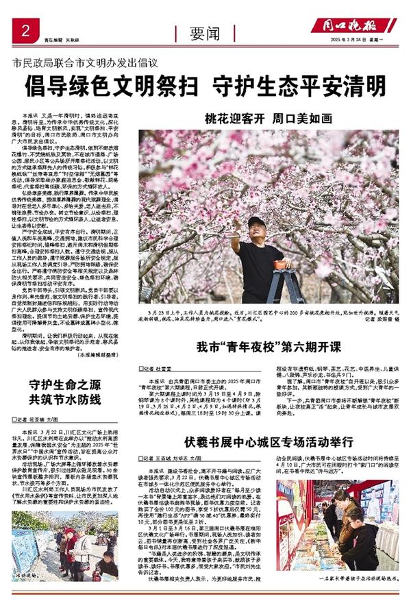 3月23日上午,工作人员为桃花授粉。近日,川汇区园艺中心的200多亩桃花竞相开放,宛如世外桃源。随着天气逐渐转暖,桃花、油菜花持续盛开,周口进入“赏花模式”。记者 梁照曾 摄