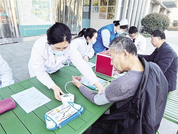 医护人员为群众测量血压。今年3月21日是第25个“世界睡眠日”,活动主题为“健康睡眠,优先之选”。为帮助群众树立科学睡眠观念,当日,周口市第六人民医院(周口市精神病医院)在门诊楼前开展了健康知识宣传义诊活动,吸引了众多群众前来咨询就诊。