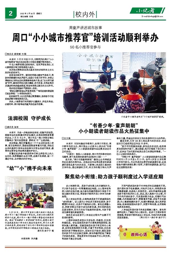 入学适应阶段对孩子未来发展意义重大,家长和教师应深入了解孩子的心理状态,在多个方面采取有效措施,帮助孩子顺利适应小学生活,为他们的未来奠定坚实基础。(周口市六一路小学 赵宁宁)