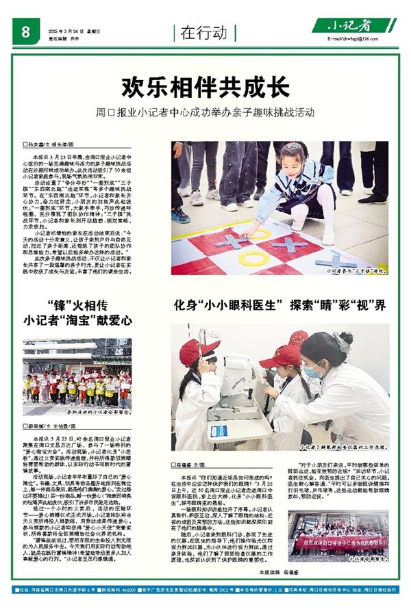 本报讯 3月23日早晨,由周口报业小记者中心组织的一场充满趣味与活力的亲子趣味挑战活动在沙颍河畔成功举办。此次活动吸引了50余组小记者家庭参与,现场气氛热闹非常。