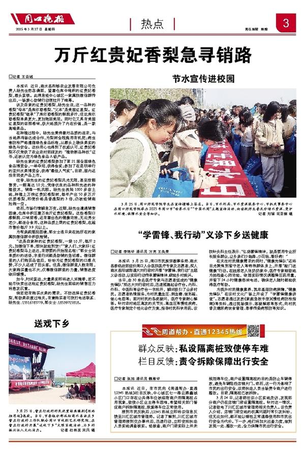 本报讯 近日,商水县和畅农业发展有限公司负责人杨先生愁容满面,望着仓库中堆积的红贵妃香梨,眉头紧锁。此消息经中心城区一家属院微信群传出后,一场爱心助销行动便拉开了帷幕。