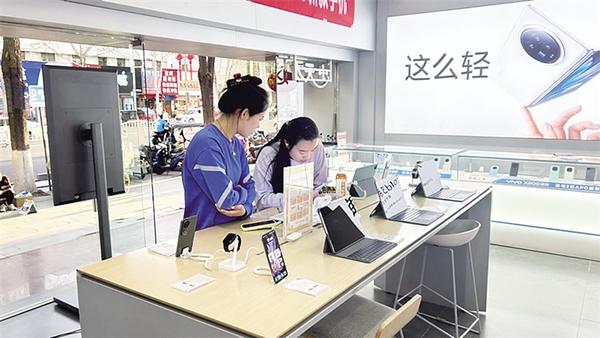 3月25日,记者到中心城区多家品牌手机的授权销售店实地采访。多位消费者表示,使用购新补贴买到了自己心仪已久的手机、平板等数字产品。销售商家表示,“国补”政策落地后,手机等数码产品销量有明显增长。