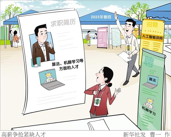 2025年春招中,人工智能领域招聘需求大幅增长,算法、机器学习等方面的人才成为企业高薪争抢的“香饽饽”,人工智能讲师岗位招聘量也在激增。 新华社发 曹一 作