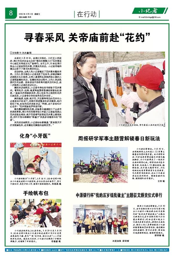 小记者在帆布包上认真作画。3月29日至3月30日,90余名周口报业小记者分批走进周口市川汇区爱尚家庭茂4楼,参与“‘袋’走污染,绘出未来”——手绘帆布包活动。通过此次活动,小记者不仅锻炼了手眼协调能力,还增强了环保意识。岳蕴睿 摄