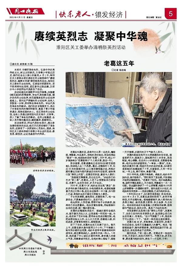 老葛名叫葛庆亚,是我市文化界一名老兵,擅画画、精摄影,作品甚丰。按他的身份地位,完全担得起“葛老”一称,他却始终自称“老葛”。2024年,他以87岁高龄举办“老葛画周口”个人美术展,轰动一时。