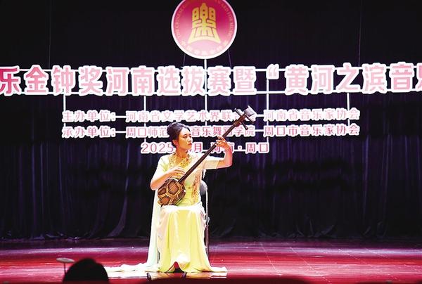 4月8日,琵琶选手在比赛中。当日,由河南省文联、河南省音乐家协会主办,周口师范学院音乐舞蹈学院、周口市音乐家协会承办的第十五届中国音乐金钟奖河南选拔赛暨“黄河之滨音乐周”音乐展演活动在周口师范学院举行。来自全省各地的200余名优秀选手,在琵琶、古筝等组别展开半决赛、决赛的角逐,胜出者将入围全国选拔赛。 记者 梁照曾 摄