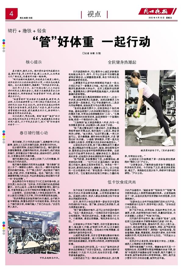 四月的周口,繁花似锦。围绕“减重”“健身”的讨论从网络空间延伸至日常生活中。随着健康生活理念的深入普及,不少市民走出家门,投入“管”好体重的行动中……