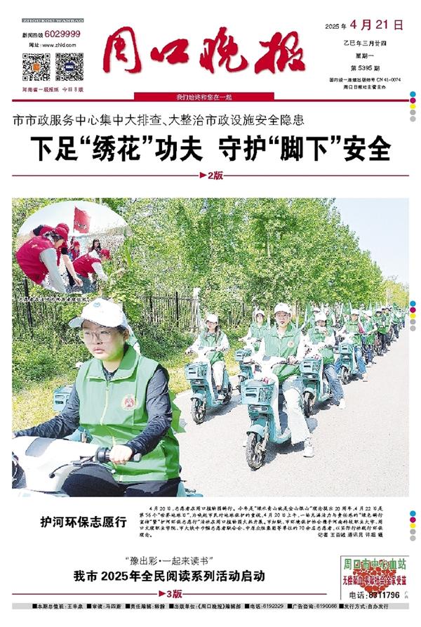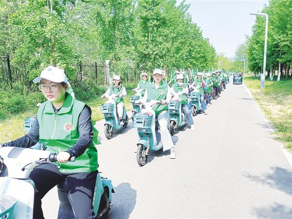 4月20日,志愿者在周口植物园骑行。今年是“绿水青山就是金山银山”理念提出20周年,4月22日是第56个“世界地球日”,为唤起市民对地球保护的重视,4月20日上午,一场充满活力与责任感的“绿色骑行宣传”暨“护河环保志愿行”活动在周口植物园火热开展。市妇联、市环境保护协会携手河南科技职业大学、周口文理职业学院、市大铁牛巾帼志愿者联合会、中原众恒集团等单位的70余名志愿者,以实际行动践行环保理念。记者 王吉城 通讯员 许超 摄