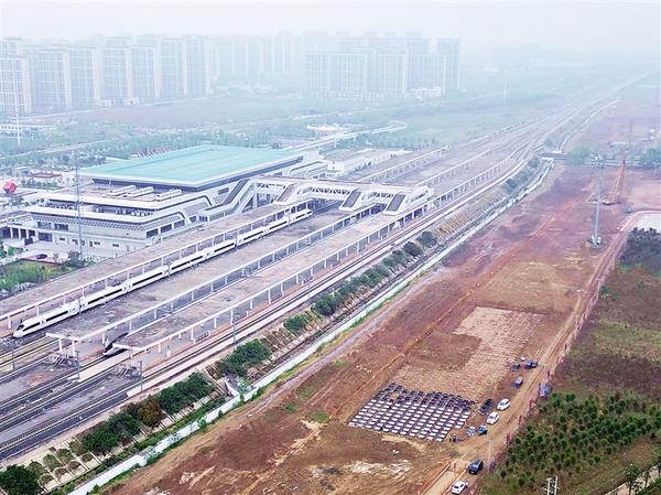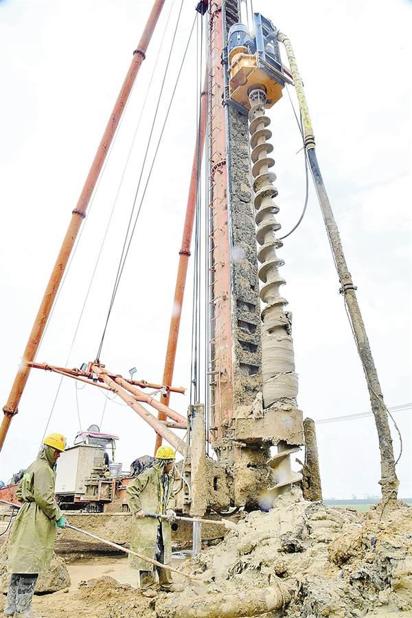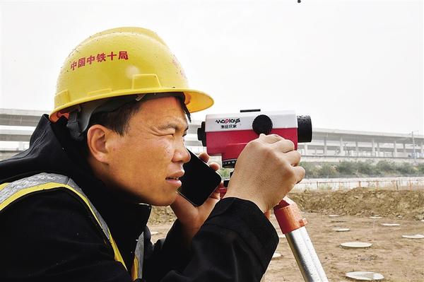 4月21日上午,中铁十局的工程技术人员冒雨在工地施工(左)、测绘(中)。近日,由中铁十局承建的平漯周高铁周口东站开建。平漯周高铁周口东站位于郑阜高铁周口东站东侧,南北路基长为1.29公里,将建2台6线路基、框架桥涵,接通郑阜高铁周口东站的旅客地道、天桥,还要改建郑阜高铁线的电缆槽、道岔等,施工内容复杂,综合施工难度大。中铁十局自3月15日开工以来,主要开展地基方面的CFG桩及桩帽工程施工。目前CFG桩共施工完成约38%,桩帽施工完成约500余个。记者 梁照曾 摄