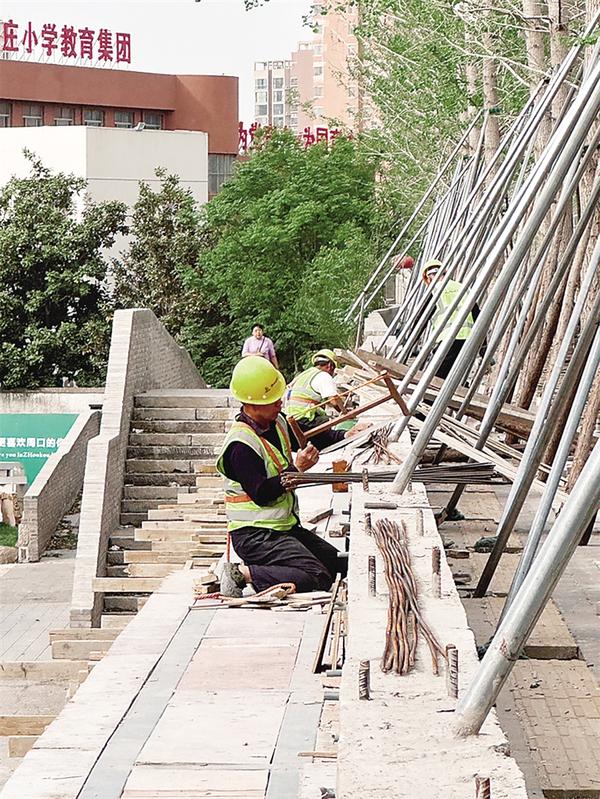 工人正在紧张施工。眼下正是施工黄金期,近日,记者在运粮河公园施工现场看到,项目建设正在提速推进,争取早建成、早使用,让市民就近享受优质公共服务,不断增强市民的幸福感、获得感。记者 杜营营 摄