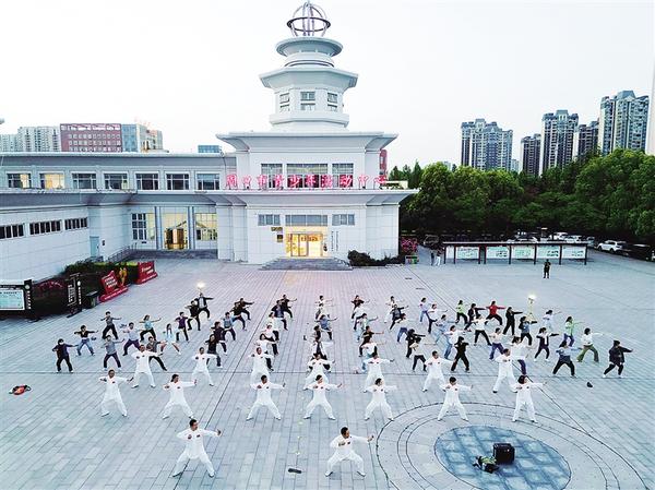 4月23日,周口青年夜校迎来特殊的一课,该夜校的65名八段锦爱好者,跟着市武术协会老师陈文学学练八段锦,场面十分壮观。记者 梁照曾 摄