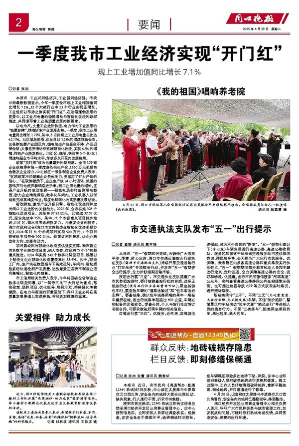 4月27日,周口市退伍军人合唱团到川汇区太昊路老年护理院慰问演出。合唱团成员与老人一起演唱《我的祖国》。通讯员 赵素霞 摄