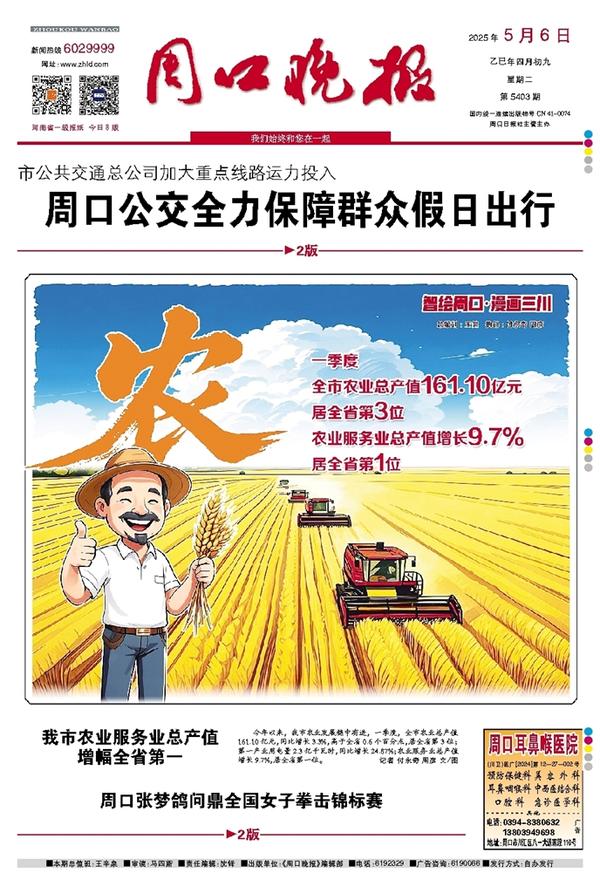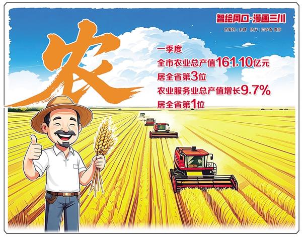 今年以来,我市农业发展稳中有进,一季度,全市农业总产值161.10亿元,同比增长3.3%,高于全省0.6个百分点,居全省第3位;第一产业用电量2.3亿千瓦时,同比增长24.87%;农业服务业总产值增长9.7%,居全省第一位。记者 付永奇 周彦 文/图
