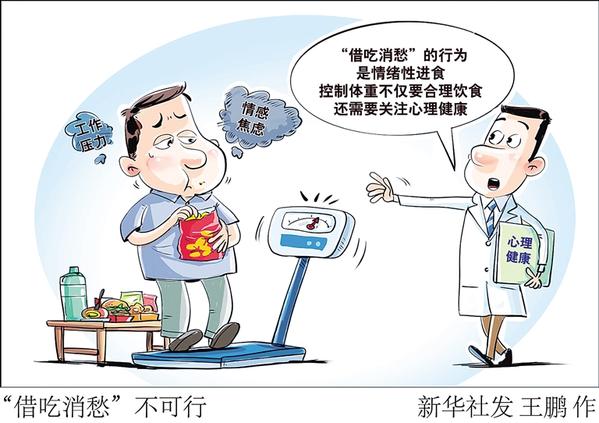有人面临工作压力、情感焦虑时,会出现“情绪性进食”行为……这些看似满足口腹之欲的举动,实际上是情绪困境的“求救信号”。5月11日是世界防治肥胖日,心理健康与体重管理的关联再度引发关注。心理学专家指出,当工作压力袭来、生活陷入焦虑时,许多人会不自觉地打开零食柜,用高热量的食物“填补”内心的空洞。这种“借吃消愁”的行为,是情绪性进食。控制体重不仅要合理饮食,还需要关注心理健康。 新华社发 王鹏 作
