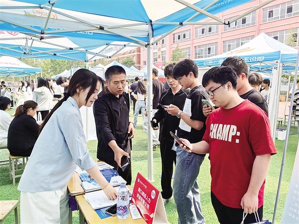 用人单位代表向求职学生介绍企业情况。5月15日,周口理工职业学院举办2025届毕业生“双选会”。活动中,求职学生积极与用人单位代表沟通交流、提交个人简历。用人单位代表耐心解答疑问,介绍公司发展前景、岗位需求及福利待遇等情况,积极招揽优秀人才。不少学生在活动现场就通过了用人单位的初筛。该校相关负责人表示,未来将进一步深化校企合作、拓展就业渠道,为学生精准就业保驾护航。 记者 刘华志 摄