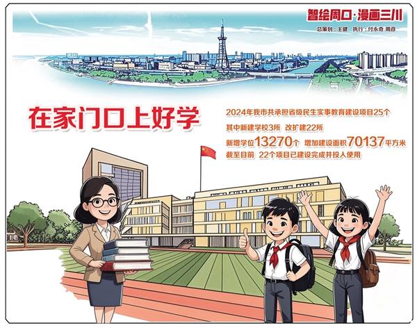近日,记者从周口市教体局获悉,2024年我市共承担省级民生实事教育建设项目25个,其中新建学校3所、改扩建22所,新增学位13270个,增加建设面积70137平方米。截至目前,22个项目已建设完成并投入使用,剩余3所学校正在进行装饰装修和内外墙粉刷,均达到省级考核验收标准。记者 黄佳 周彦 文/图