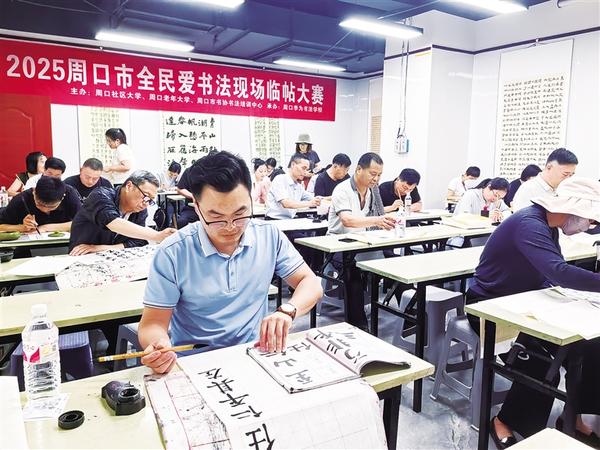 本报讯 5月15日,由周口社区(老年)大学、周口市书协书法培训中心主办的全民爱书法现场临帖大赛在李为书法学校圆满闭幕。300余名不同年龄段的书法爱好者齐聚一堂,以笔墨传承文化,共赴这场跨越代际的艺术盛会。