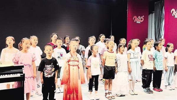5月17日上午,周口报业小记者在市文化馆小剧场学唱《读唐诗》。此次活动,为小记者提供了一个展示自我、提升自我的平台,也让他们在音乐的世界里收获了知识和友谊。王怡雯 摄