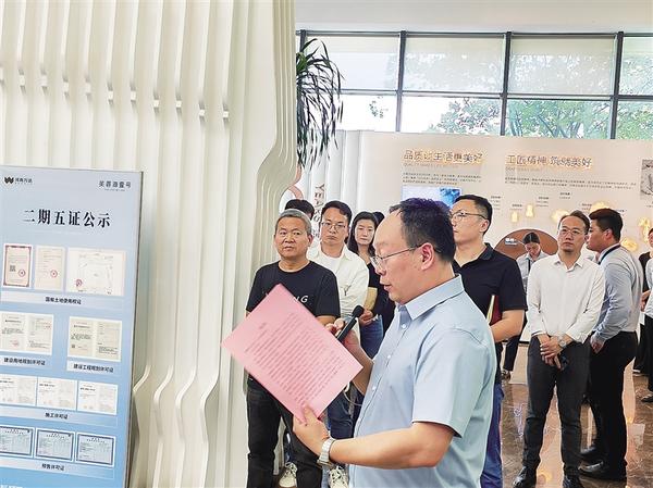 实地观摩中,从规划、建筑、景观设施等各方面出发,参会者先后参观了小区大门、建筑立面、入户门头、活动空间等建筑场景,仔细观摩了绿化种植、外墙涂料、房间布局等各个建筑细节,并听取建设单位相关负责人介绍。芙蓉湖壹号项目“好房子”设计理念及建设交付标准、物业管理先进经验;水岸尚品项目规划设计理念及工程质量把控、后续物业服务等令参会者眼前一亮。
