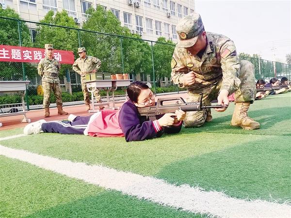 太康县第六实验学校学生体验95式自动步枪模拟射击。近日,太康县人武部、太康县委宣传部、太康县退役军人事务局组织工作人员来到太康县第六实验学校,开展“国防教育进校园”主题实践活动,通过“军事知识科普+沉浸体验+爱国教育”的形式,让广大少年儿童零距离感受国防力量。记者 张洪涛 摄