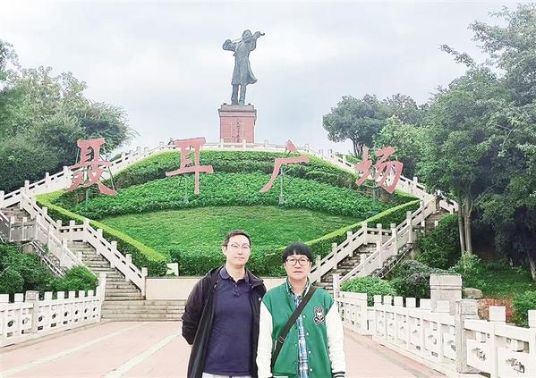 玉溪聂耳音乐广场的核心区域有意被设计成一个小提琴状,在花香簇拥中,聂耳铜像在天地间矗立着。