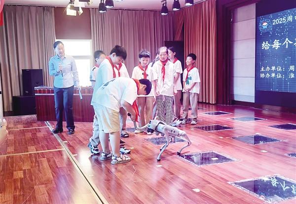 5月28日,市科技馆联合市气象局、市机器人协会,组织工作人员走进淮阳外国语实验小学开展科普活动。工作人员向小朋友们介绍了人工智能的有关知识,并现场演示机器狗工作原理。人工智能的神奇魅力深深吸引了孩子们,此次活动在他们心中撒下了科学的种子。记者 侯俊豫 通讯员 郭媛媛 摄