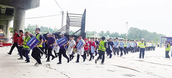 6月18日上午,周口市2025年公路水运港口综合应急抢险救援演练在大广高速沙颍河大桥北岸举行。本次演练以“‘汛’练有素,高效应急”为主题,整个演练过程规范有序、紧凑高效,全体参演人员严格按照应急预案要求执行演练任务,全身心投入应急抢险救援工作,演练科目全部按原计划完成,达到了以练促训、为战而练、战训结合、实战实效的预期效果。记者 刘猛 摄