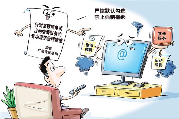 记者6月17日从国家广播电视总局获悉,总局近日实施针对互联网电视自动续费服务的专项规范管理措施。此次治理聚焦用户反映较为集中的自动续费“扣费前无提醒”“取消流程复杂”“投诉渠道不畅”等痛点问题,通过规范服务规则,全面优化互联网电视消费体验,在巩固治理电视“套娃”收费工作的基础上,构建更加公平、透明、便捷的互联网电视服务生态。新华社发 王鹏 作