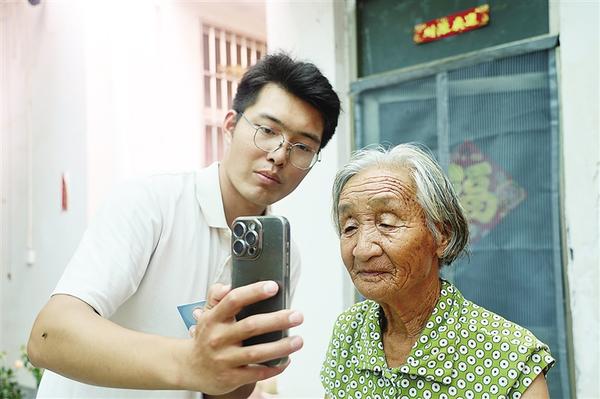 在淮阳区王店街道祝寨村,返乡大学生周宏领为老人完善身份信息。近日,淮阳区开展80岁以上老人津贴系统信息更新工作,为确保政策精准落实,老人需提供最新身份信息。针对独居老人行动不便、操作手机困难等问题,工作人员走进老人家中协助办理相关事宜。他们耐心地帮助老人核对证件信息、填写表格,并通过手机或电脑完成资料上传工作,让老人足不出户即可完成信息更新。这一暖心举措既解决了独居老人的实际困难,又提高了数据采集效率,获得当地群众一致好评。记者 刘俊涛 摄