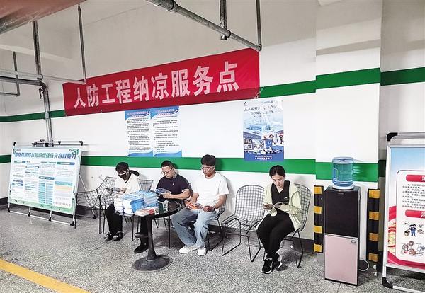 市民在人防工程纳凉服务点休息。记者从市国防动员办公室了解到,为更好践行“人民防空为人民”宗旨,我市充分运用地下人防工程“冬暖夏凉”的资源优势,在评估人防工程结构安全、通风条件及服务能力的基础上,开放位于中心城区文昌万达广场、商水县西丹花苑以及太康县九和府小区的3处人防工程并设置纳凉服务点,供附近市民前来纳凉。记者 何晴 通讯员 杨保雷 摄
