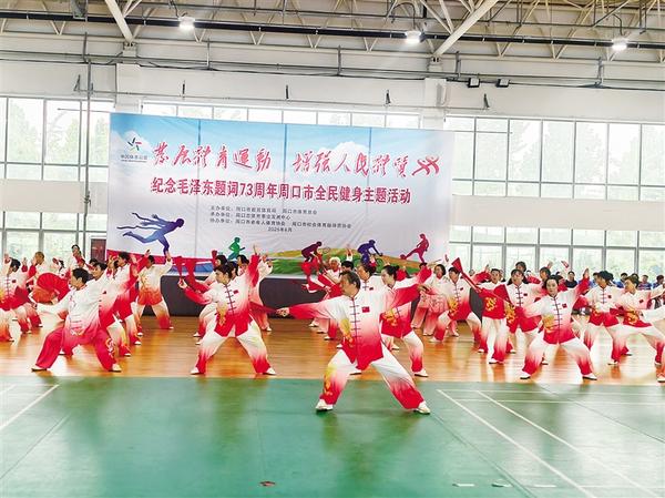 本报讯 为纪念毛泽东同志“发展体育运动,增强人民体质”题词73周年,推动全民健身与全民健康深度融合,6月25日,市教体局等单位在市体育中心老年人健身馆举办周口市纪念毛泽东同志题词73周年全民健身主题活动。