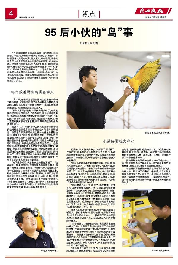 “因为我自己喜欢这个东西,无论遇到任何困难,我都在不停地攻克难关,然后去突破。回头看创业过程,虽然比较累,但是特别充实。”位森林对鹦鹉的热爱,如同烈火般炽热。他沉醉于钻研有关鹦鹉的书籍和资料,每一本书、每一份资料,仿佛都打开了一个新世界的大门。