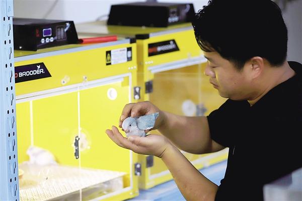 “对于蛋死亡、闷壳这些问题,我们摸索出独有的解决方案。”位森林透露,核心突破在于优化奶粉吸收度,并结合弱雏护理方案,通过添加钙剂、维生素,科学配比营养成分,使幼鸟的关键健康指标显著提升。“刚开始养殖鹦鹉时,由于缺乏经验,孵化率并不高。”位森林说,“想要鹦鹉健康,饮食是一方面,更重要的是平时要注意卫生。”养殖过程中,他边实践、边摸索,从孵化到培育、从环境到食物,每一个环节都严格把关。