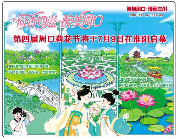 7月9日,第四届周口荷花节将在淮阳盛大启幕。本届荷花节以“荷香四溢·醉美周口”为主题,活动亮点纷呈——国风雅韵音乐会奏响千年古韵,无人机星空秀点亮伏羲陵夜空,3D水幕光影秀演绎荷塘幻境,荷花市集汇聚非遗文创精品。文旅消费季亦同步开启,涵盖“三苏”文化研学、围棋国手竞技、龙湖夜游、划拳擂台等活动。