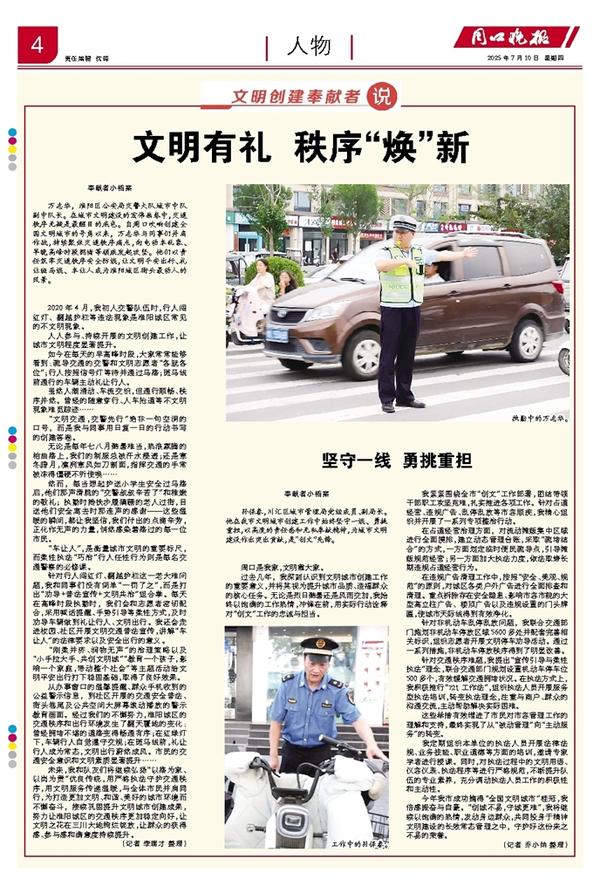 孙保春,川汇区城市管理局党组成员、副局长。他在我市文明城市创建工作中始终坚守一线、勇挑重担,以高度的责任感和无私奉献精神,为城市文明建设作出突出贡献,是“创文”先锋。
