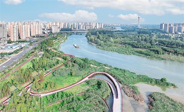 波光粼粼的河面、构思巧妙的景观游园,市民漫步在沙颍河城区段两岸滨河公园里,抬眼花木葱茏,远眺如诗如画,健身步道、亲水观景台,一步一景让人陶醉。