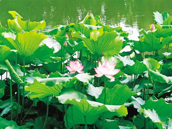 湖畔已被人潮填满,赏荷、摄荷的人络绎不绝。我在湖边的小道上驻足,目光从层层叠叠的荷叶上掠过,突然看见浅水区有几枝被风吹折的花苞。正在清理杂物的花工看出了我的心思,随手递来两枝:“拿去吧,反正也是要清理的。”指尖触及花瓣的刹那,凉意顺着指腹蔓延。花苞上的露珠“啪嗒”坠在荷叶上,碎成无数闪烁的星子,空气中浮动的荷香也愈发清冷。