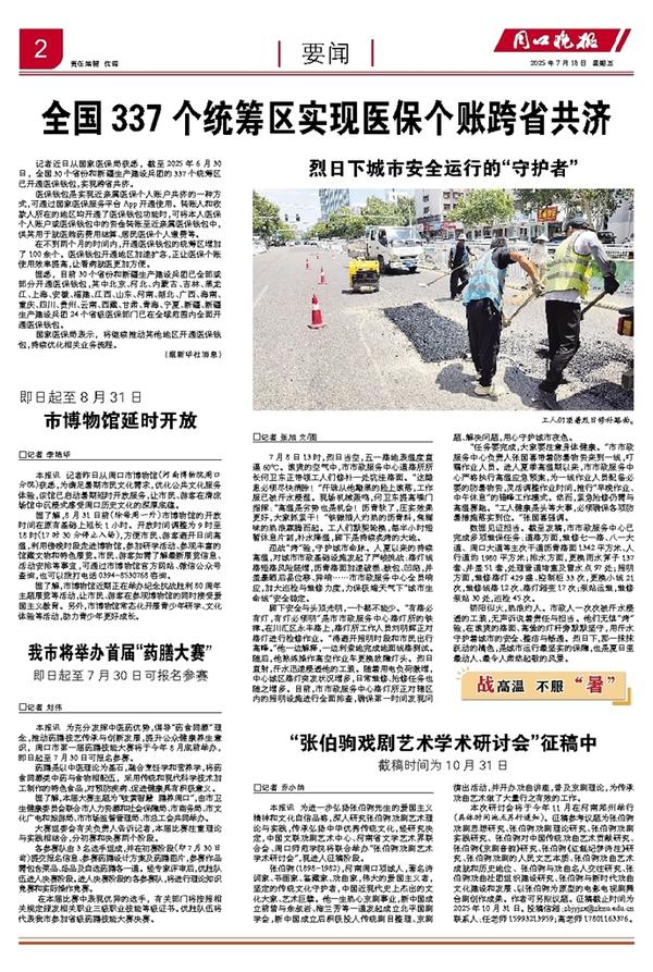 据了解,市博物馆近期正在举办纪念抗战胜利80周年主题展览等活动,让市民、游客在参观博物馆的同时接受爱国主义教育。另外,市博物馆常态化开展青少年研学、文化体验等活动,助力青少年更好成长。