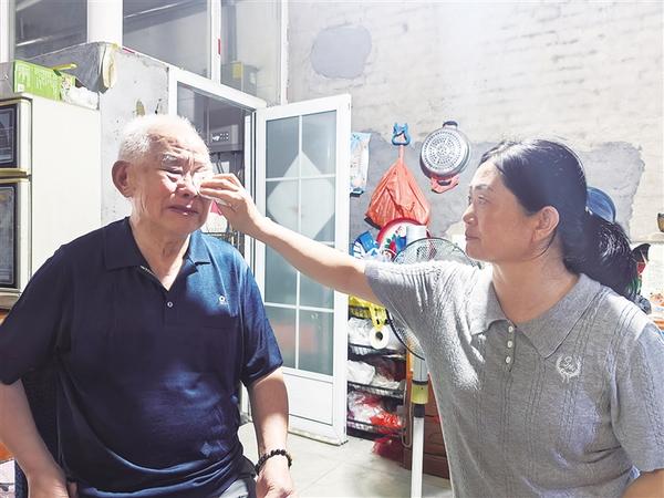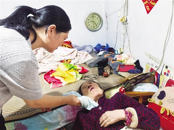 7月19日早上,记者采访时,董素灵正给卧床的婆婆洗脸,老人突然含糊地说:“孩子啊,娘拖累你了……”董素灵笑着摇头:“娘,咱是一家人。”此刻,小院里弥漫着超越血缘的温情。