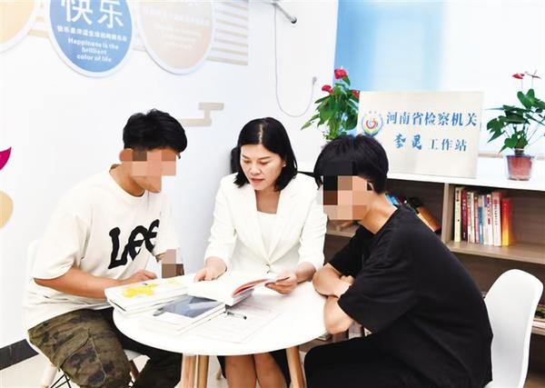 当日下午,小谨(化名)和小强(化名)也如约来到淮阳区人民检察院的“豫见未来·李灵工作站”。在这里,他们与李灵共读《平凡的世界》,接受心理疏导和面对面帮教。