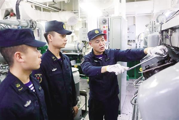 日前,南海海域,战舰驰骋,南部战区海军某大队一场实战化海上训练正在紧张进行。突然间,某运输船机舱内动力系统出现问题,“老王”到达现场后,话不多说直接上手。分析、判断、定位……短短几分钟后,“老王”胸有成竹地将故障锁定在了一个气缸盖上。