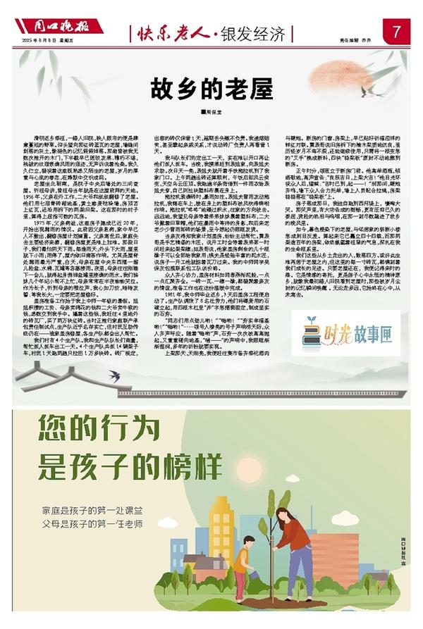 拖拉机装满砖时,暴雨如注。表姐夫冒雨发动拖拉机,我蜷在车上,披在身上的塑料布被风吹得噼啪作响。拖拉机“咚咚”地碾过积水,往家的方向驶去。远远地,我望见母亲带着弟弟妹妹裹着塑料布,二大爷戴着旧草帽,他们在暴雨中等待的身影,和后来老老少少冒雨卸砖的场景,至今想起仍眼眶发烫。
