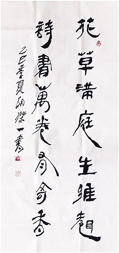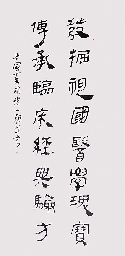 胡杰一,号古月济生,周口华侨医院董事长、主任医师、高级心理咨询师。 胡杰一悉心钻研汉简书法的用墨艺术,其作品涵盖篆、隶、真、草等多种字体,用墨自然,笔势洒脱,形成了独具特色的艺术风格。尤其在墨材运用、工具选择与风格塑造上,他笔法丰富多变,墨色层次鲜明,呈现出独特的艺术表现力。